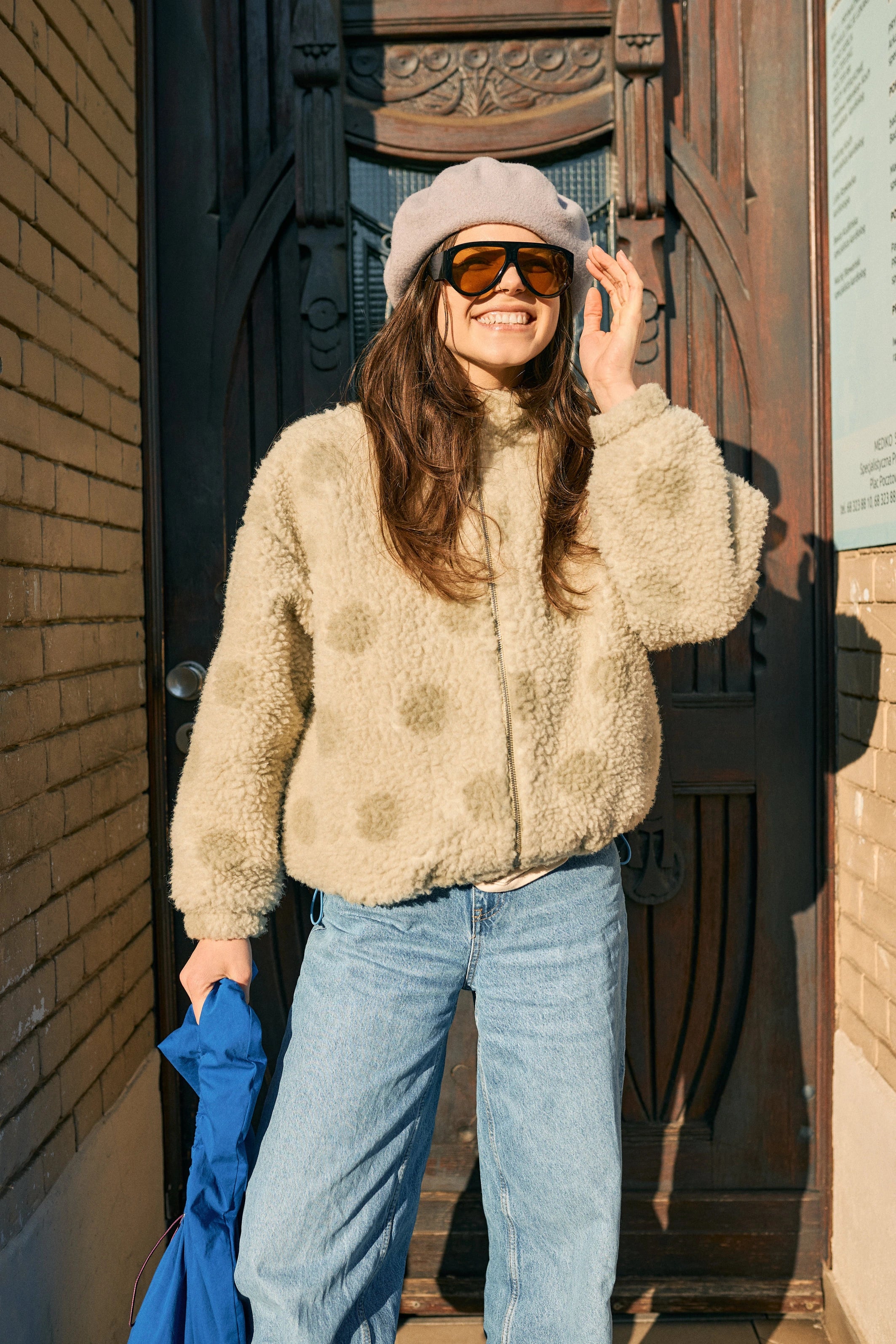 Bomberjacke aus Wolle – gepunktet