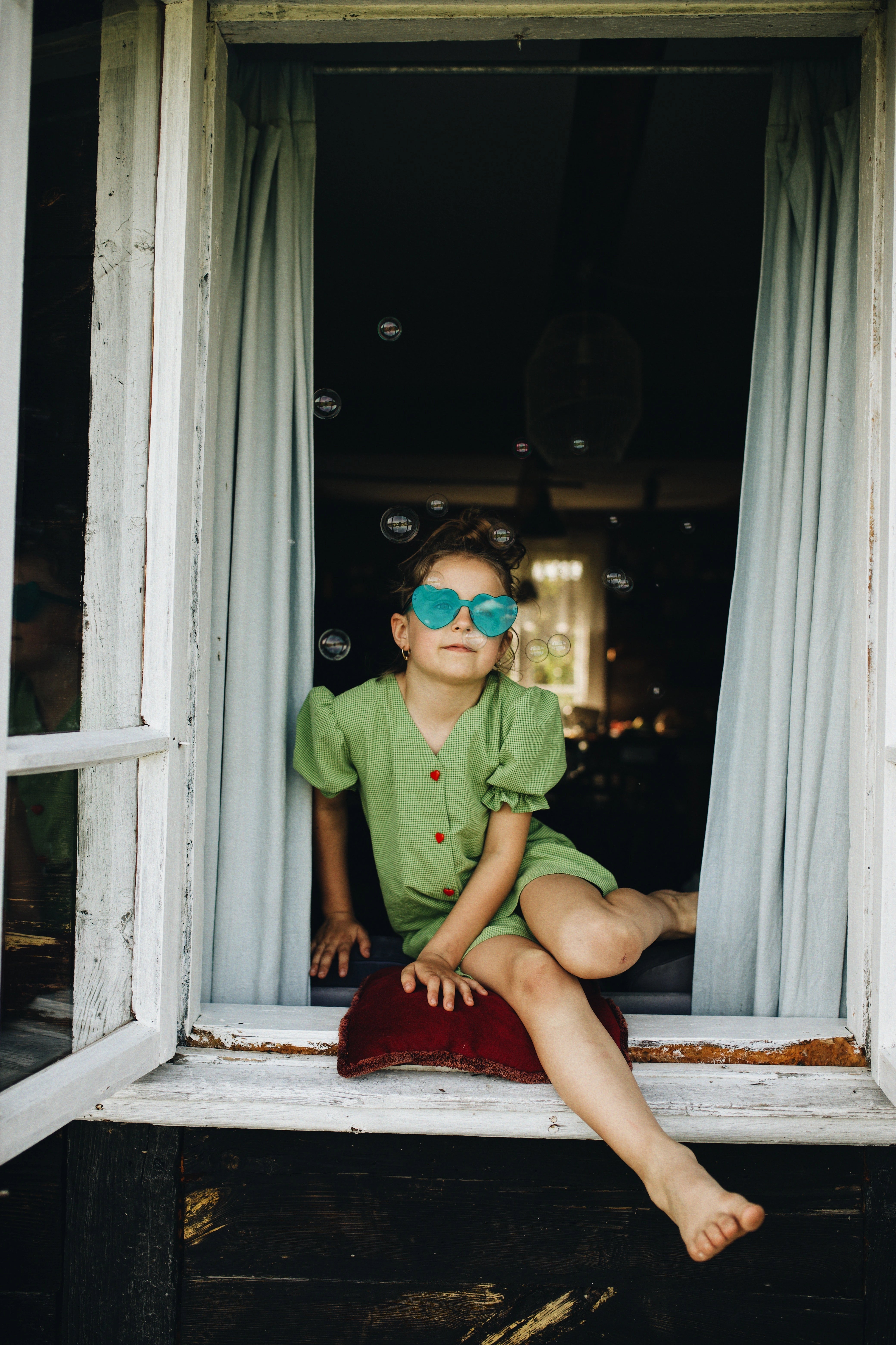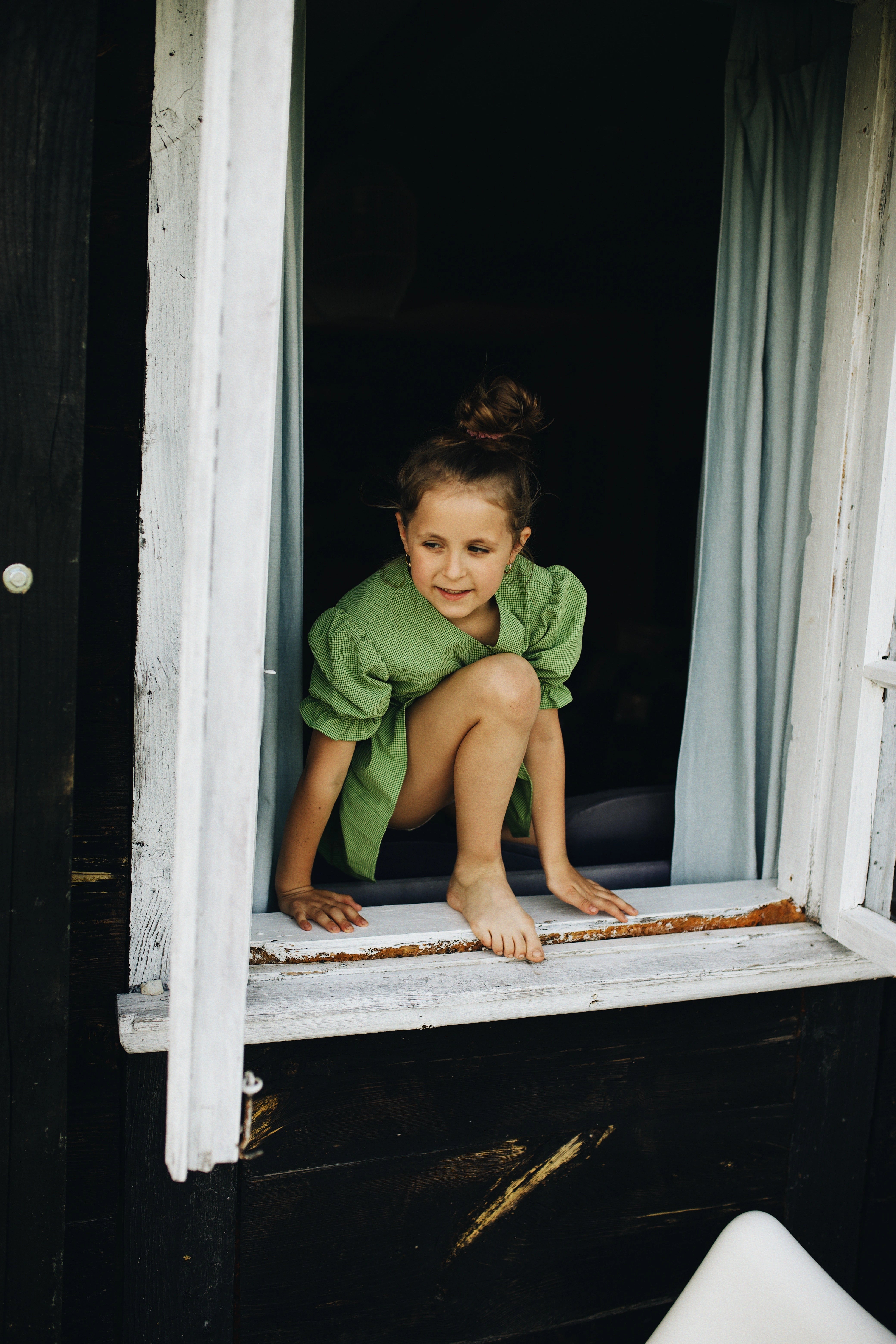 dziecięca sukienka z falbanką - MATCHA GREEN